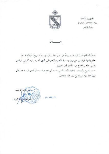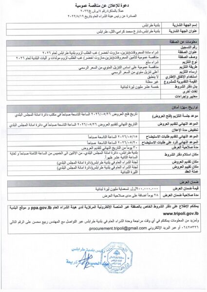 إعلانات طلب عروض اسعار لإزالة ردميات في العقار 5263-منطقة بساتين طرابلس 2 أبريل 2026 Continue reading